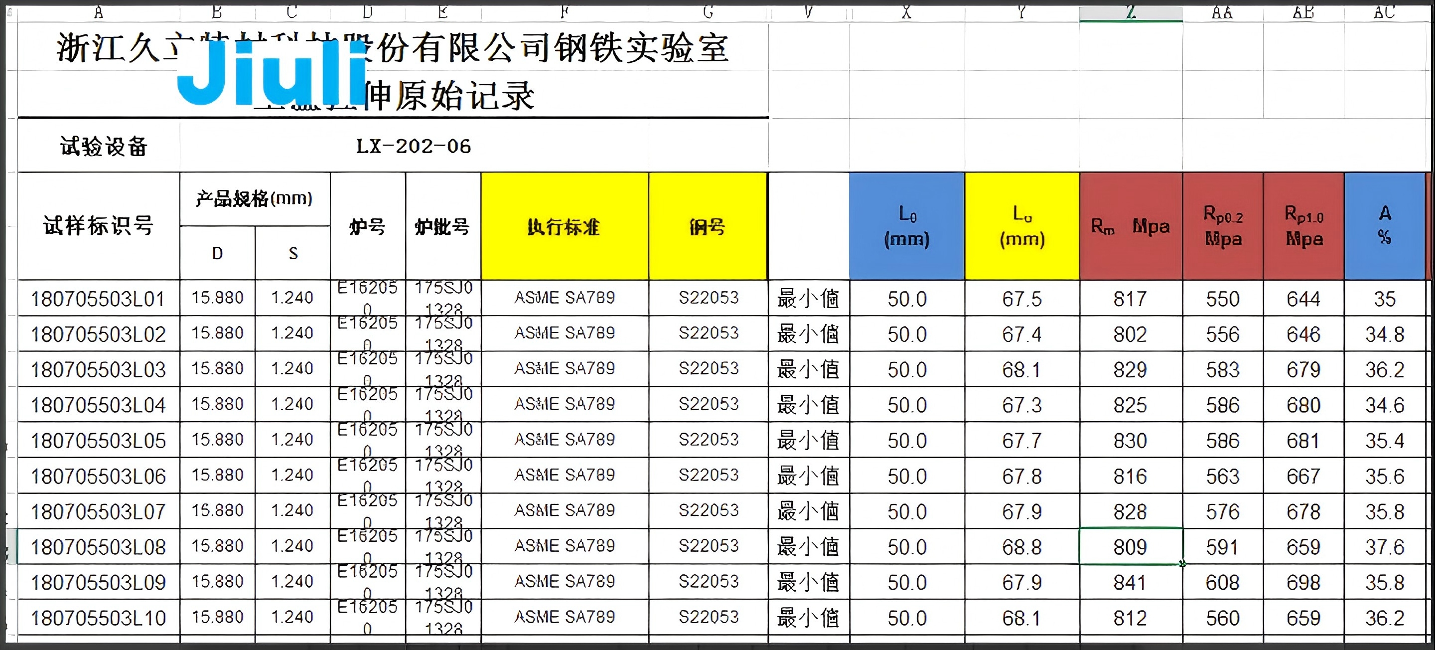 材料性能標(biāo)準(zhǔn):屈服強(qiáng)度、抗拉強(qiáng)度、延伸率均符合美標(biāo)ASME AS789
