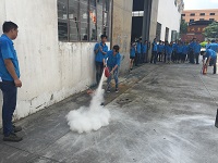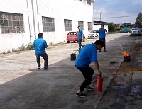 然后就是模擬火災(zāi)發(fā)生初期,規(guī)模不大時(shí),大家自己滅火,每個(gè)人都要實(shí)踐使用過一次消防器材來進(jìn)行滅火,以把以前的理論知識(shí)轉(zhuǎn)化為實(shí)際行動(dòng),加強(qiáng)大家的消防知識(shí)。