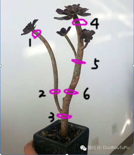 5. 桿插即扦插:把【砍頭】的肉肉插在疏松、少水土壤上坐等生根發(fā)芽。繁殖的一種方法,不適用于所有品種。(圖:錦晃星)
