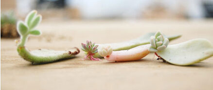 4. 葉插:把肉肉的葉片剝下來,朝上放置于濕潤土壤上生根發(fā)芽。繁殖的一種方法,不適用于所有品種。