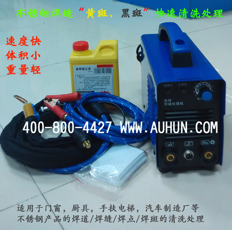焊道處理機又稱不銹鋼焊縫拋光機,焊縫處理機,不銹鋼焊道清洗機,不銹鋼焊縫清洗機,它可以高效率處理氬弧焊機焊接不銹鋼產(chǎn)品時所產(chǎn)生的黑色焊道烏點,用焊道處理機處理槍輕沾處理液對準焊道一擦,烏點即刻消失。